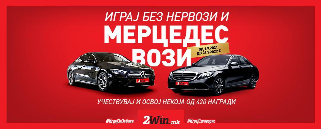 Сензационална наградна игра „Играј без нервози и Мерцедес вози“ на единствената легална платформа за интернет игри на среќа во земјава, 2win.mk